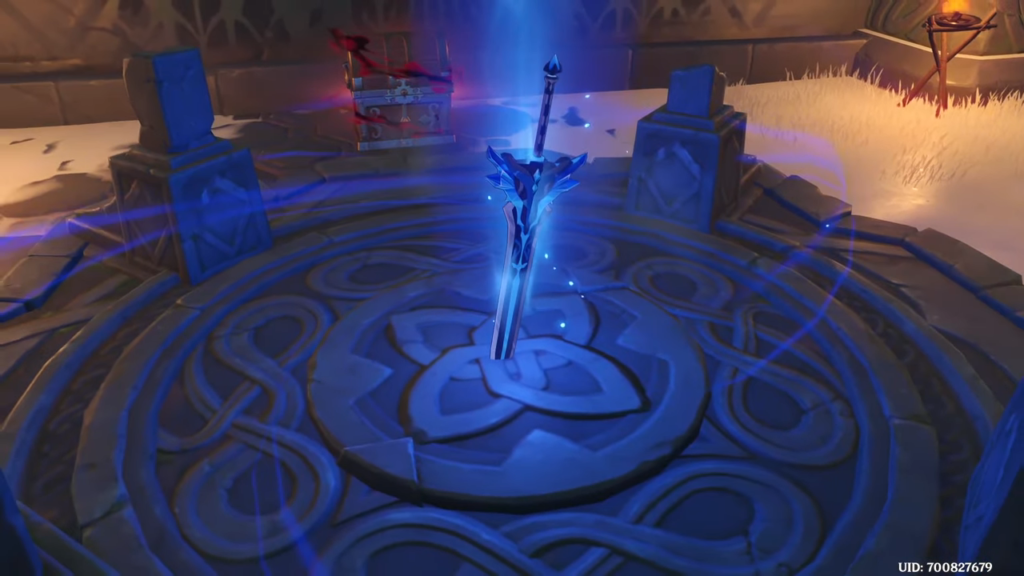 Путешествуя по Драконьему хребту вы наткнулись на загадочную Древнюю надпись, которая гласит что-то вроде: «…его душа, а звёздное серебро — кости его. Но владеть им мог разрубающий лёд чужестранец, Имунлаукр…»? Намекает на головоломку, неправда ли? Или вы смотрели какой-нибудь гайд и захотели найти хороший бесплатный меч?