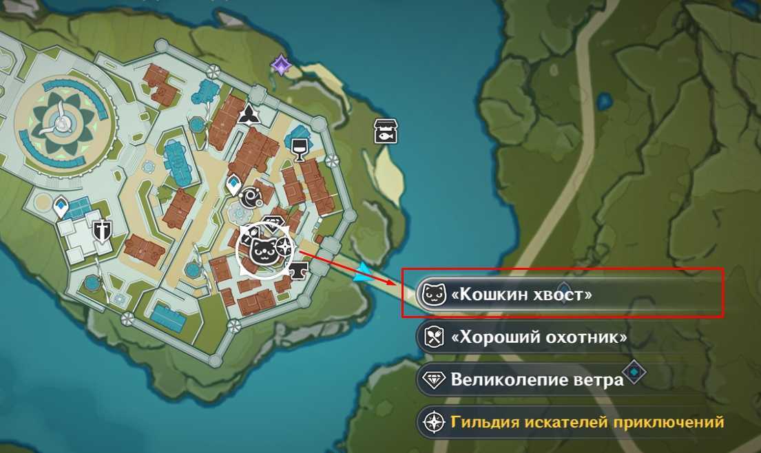 Если вы не можете найти таверну «Кошкин хвост» и Принца, посмотрите изображения ниже: