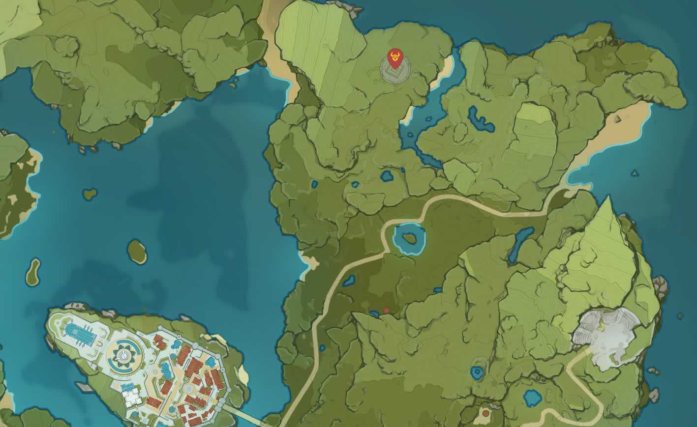 Первый элитный босс в вашем будущем послужном списке — Анемо Гипостазис или босс, который использует силу ветра. Обитает эта опасная субстанция к северу от Гендштадта — идите сначала по главной дороге, а затем не сворачивайте направо и двигайтесь вперед через Шепчущий лес и минуя Горы Буревестника. Или просто руководствуйтесь удобной картой.