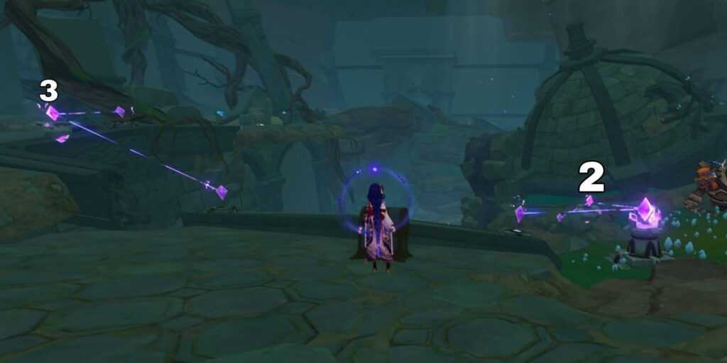 Последняя область немного сложна. Здесь туман гуще, чем раньше. Чтобы пройти через него, вам нужно зажечь тотемы Электро в этом районе. Для этого вам понадобится электро персонаж, такой как Сара или Фишль. Даже при желании нельзя бегать сквозь туман и надеяться на лучшее. Если вы останетесь в этой области без тотема слишком долго, вас телепортирует обратно.