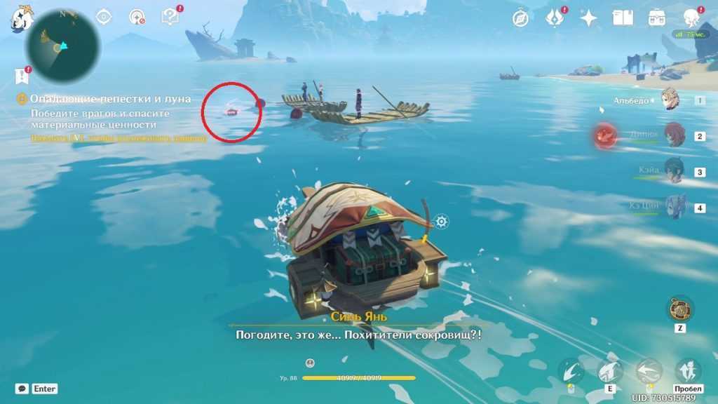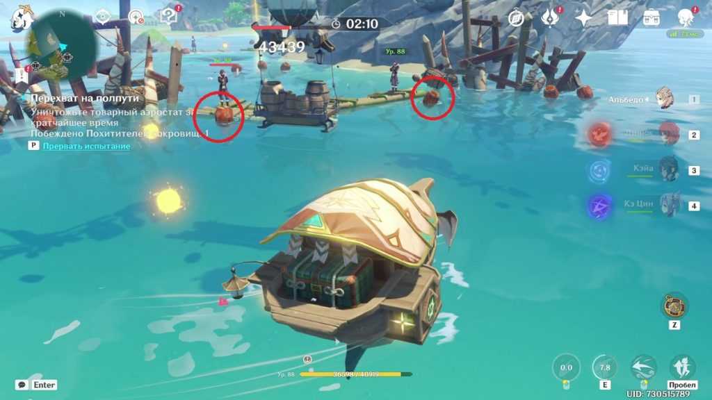 Спуститесь к нему на планере и залезайте во внутрь, пора заняться поисковыми работами вещей Нин Гуан. Суть всех поисков в основном сводится к тому, чтобы приплыть в нужную точку, зачистить всех врагов и забрать коробки.
