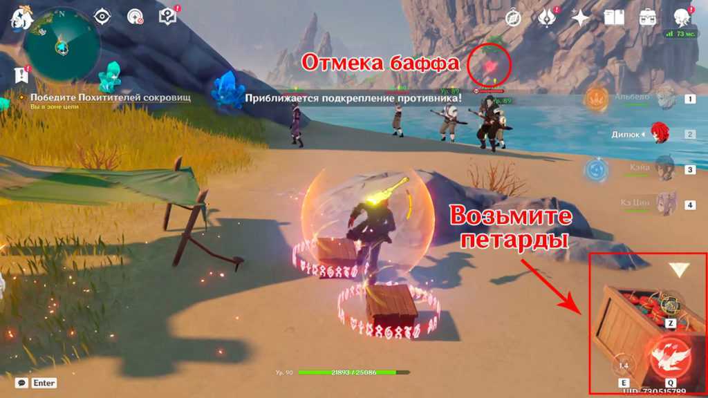 Когда вы высадитесь на землю, вы увидите противника с красным знаком над головой, это супер-сильный противник, который в настоящий момент получает бафф усилений, чтобы сбить его, необходимо подобрать петарды и активировать их рядом с ним (на клавишу T).