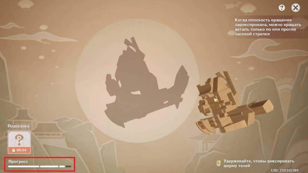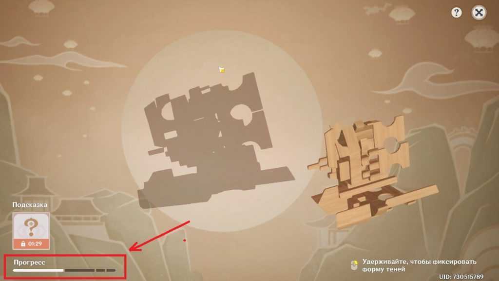 Вам можно даже не смотреть на рисунок тени, а просто сконцентрировать своё внимание на нижней левой шкале прогресса. Она будет постепенно заполняться в ходе правильных ракурсов
