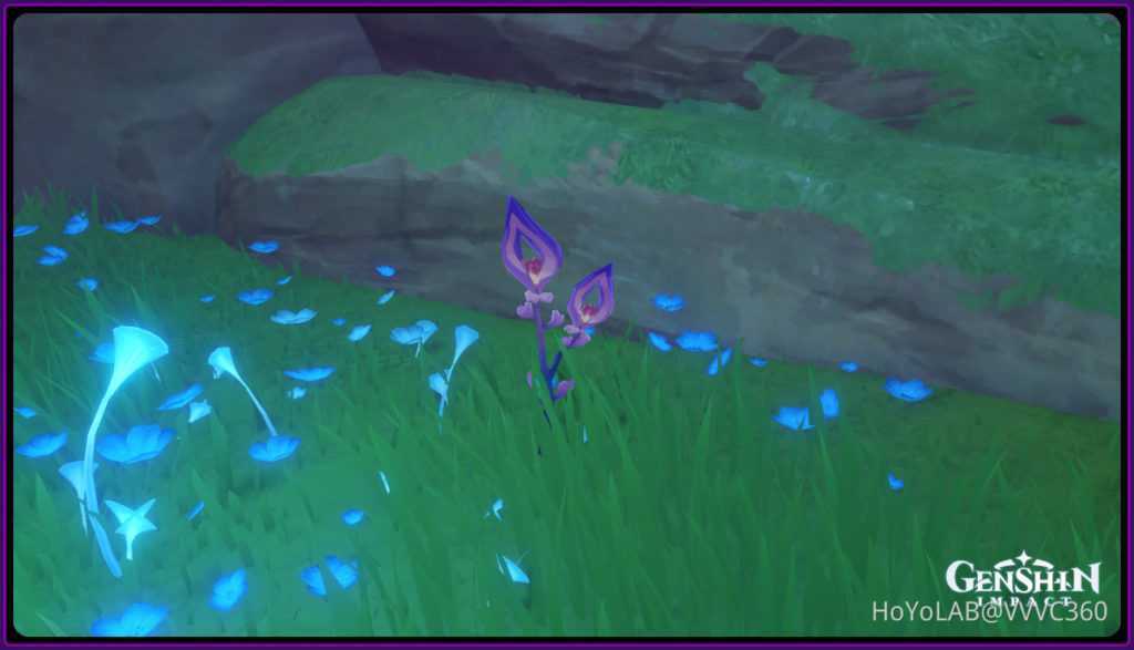 Цвет сакуры – диковина Инадзумы. Можно получить из небольших розовых и фиолетовых «облачков». Найти можно по всему региону в больших количествах. Подробнее читайте здесь