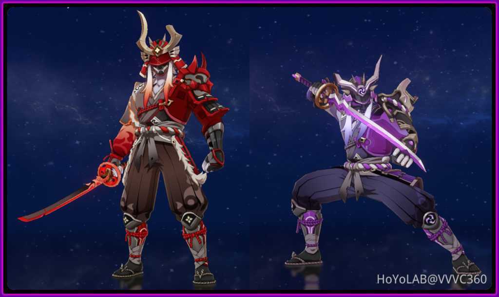 Лук Хамаюми. Увеличивает урон стандартной атаки на 16-32% и заряженной на 12-24%. При достижении элементарной энергии до 100% оружие удваивает эффект. Получить лук можно в северной части острова Каннадзука у персонажа по имени Такаси, который живет в домике из огромной ракушки. Игроку предстоит в обмен на раковины открыть один из сундуков. Эти элементы можно собрать прямо возле его дома. Возможность предоставляется 1 раз в день.