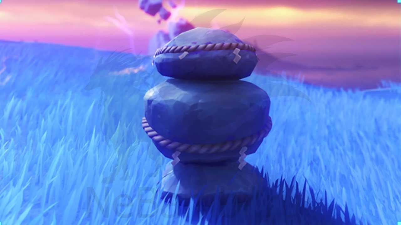 Сначала нужно прикоснуться к трем шестам с бумажными лентами. Все они вокруг камня.