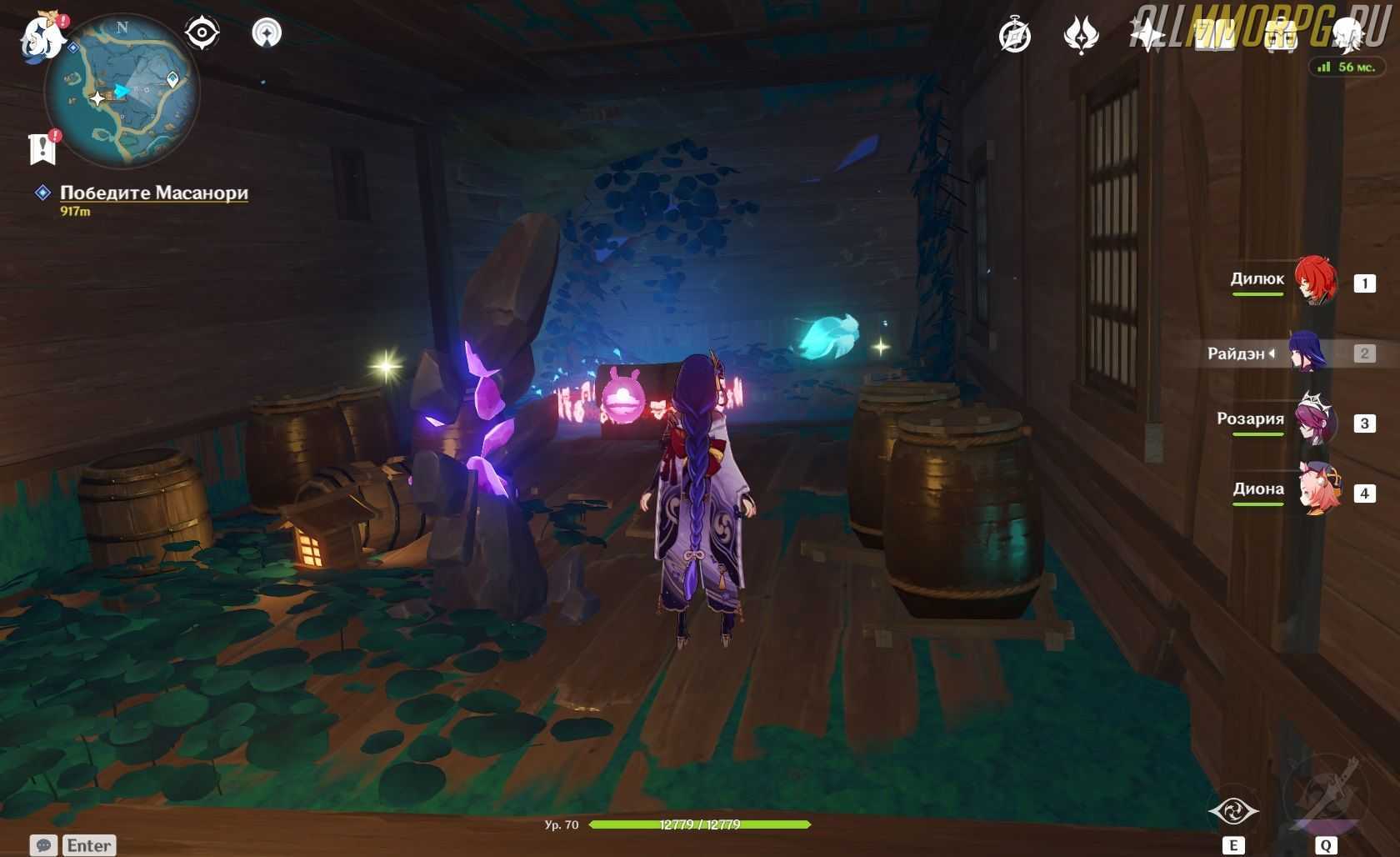 Как только игроки вернутся на берег, встаньте перед светящимися фиолетовыми камнями, чтобы установить первые два компаса в правильное положение