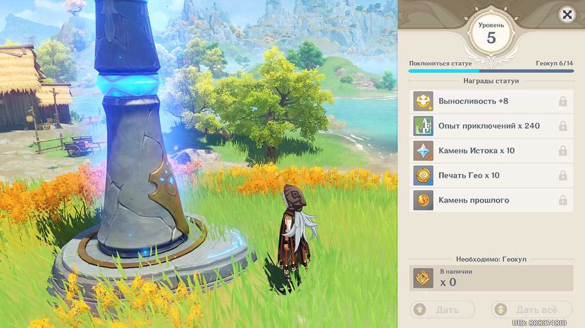 После разблокировки вы можете использовать собранные анемокулы и геокулы для повышения уровня Статуи Семи (прогресс распределяется между всеми статуями в данном регионе). Это повысит выносливость героя, а также предоставит дополнительные ресурсы, валюту и опыт приключений.