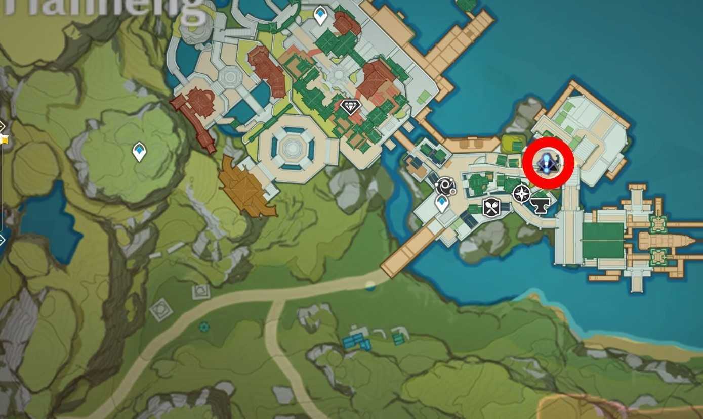 Для начала следует заполучить чертеж нужного инструмента. Чтобы добиться этого, необходимо достичь 8-го уровня репутации в городе Инадзума. Вам удастся начать зарабатывать репутационные очки, когда вы достигните 25-го ранга приключений. Побеседуйте с Мадарамэ Хякубэем для получения нужной информации. На изображениях ниже можно увидеть его точное расположение.