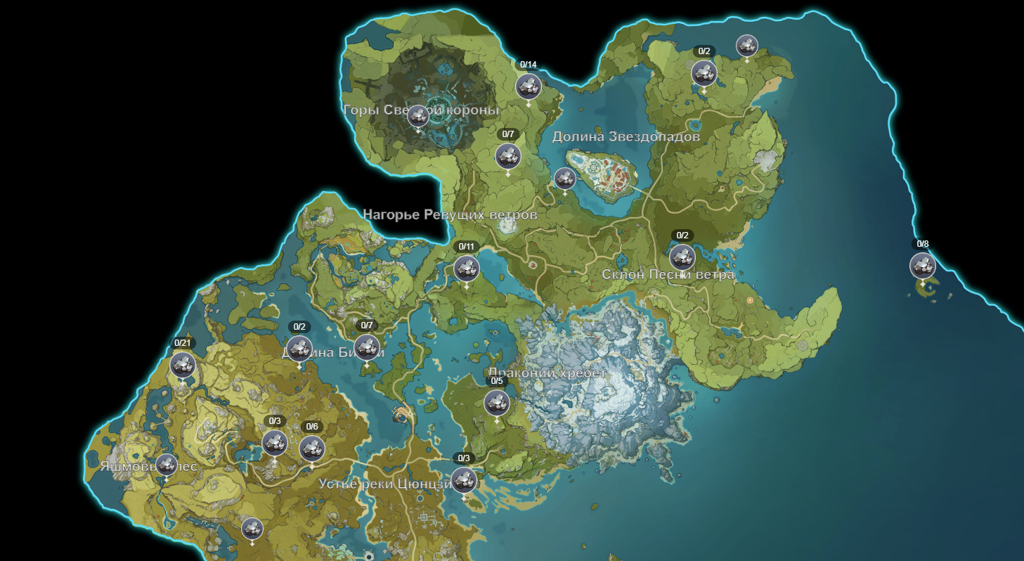 Синий камень можно добывать с самых малых уровней. Он есть по всему Мондштадту.