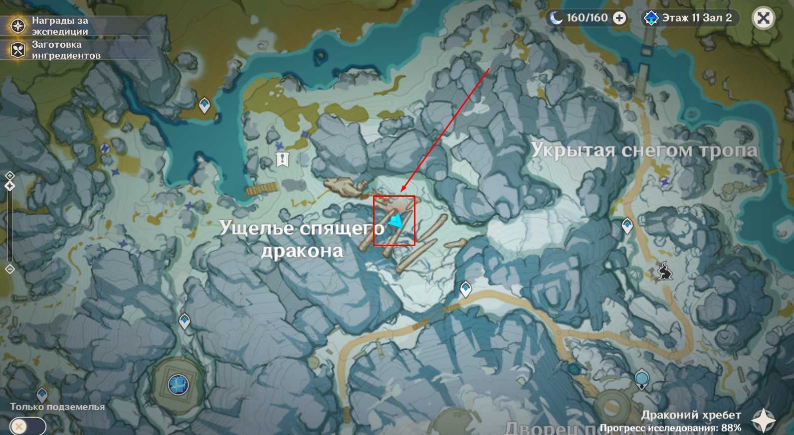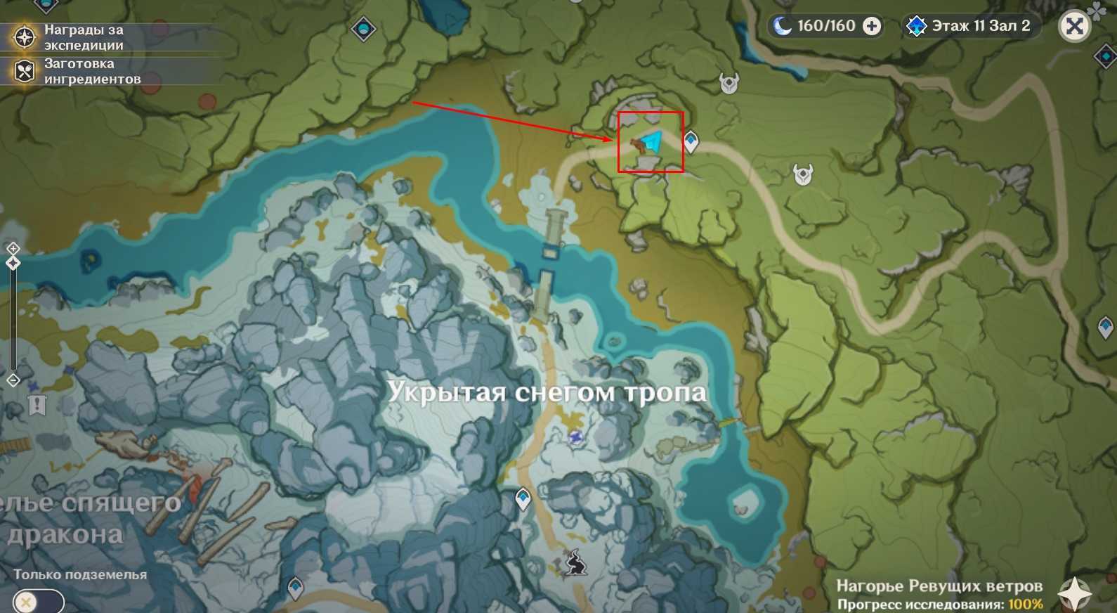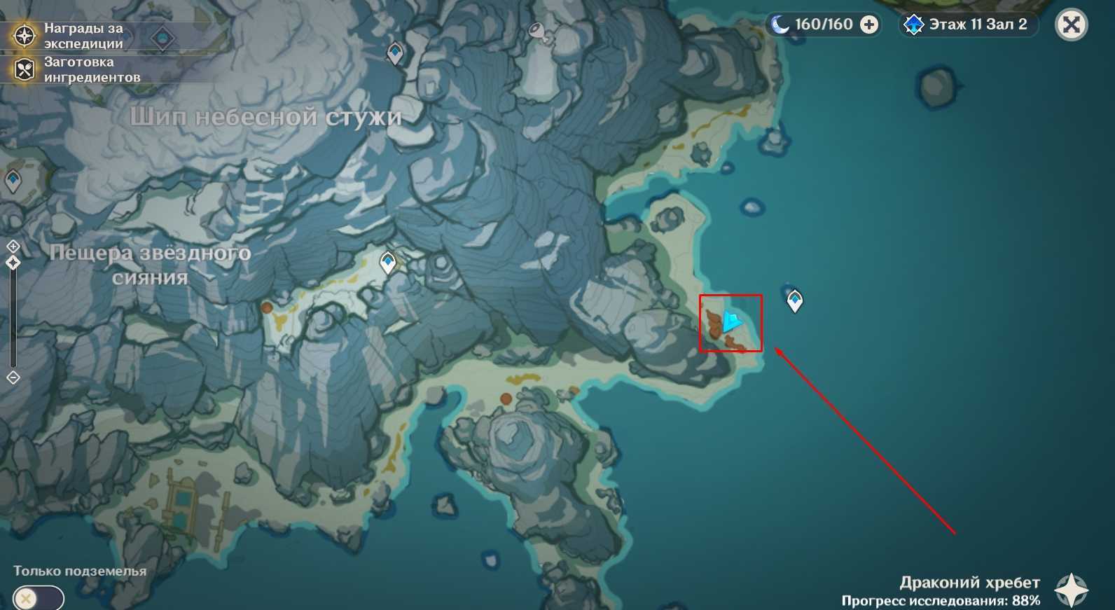 Первый находится в правом верхнем углу региона, на небольшом острове к югу от Спрингвейла (смотрите первые два скриншота). Он может быть спрятан внутри ледяного кристалла, а потому вам предстоит для начала взять алый кварц, который находится в точке, показанной на скриншотах ниже.