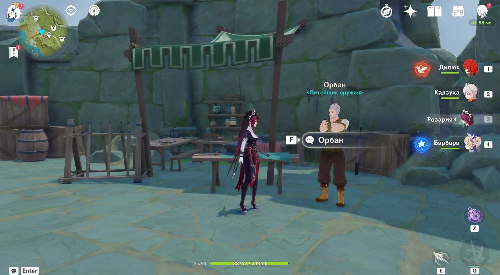 Собрав 50 единиц звездного серебра и клыки, вернитесь к Орбану и поговорите с ним – он попросит вас отправиться к драконьему сердцу. Когда вы доберетесь туда, появятся 3 Фатуи (Электро, Гео и Пиро). Обязательно возьмите с собой персонажей с нужными элементами, чтобы иметь возможность убрать их щиты. В ином случае просто подбирайте алый кварц.