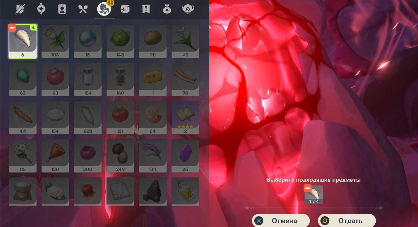 Для этого вам необходимо вернуться к месту нахождения четвертого клыка, в пещеру «Ущелья спящего дракона», и найти огромное пульсирующее сердце. Вы увидите предложение об обработке клыков. Вставив клык в сердце, вы сразитесь с несколькими волнами солдат Фатуи.