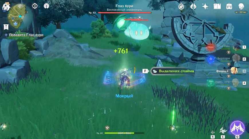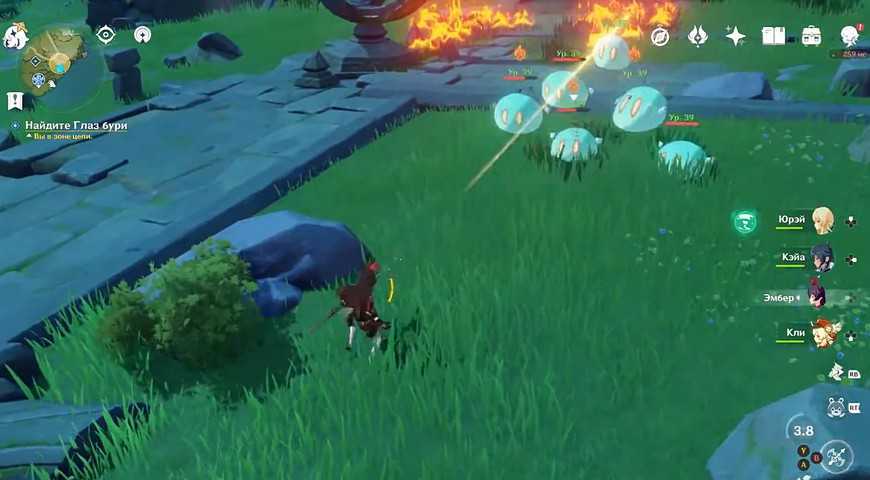 Рассеиванию настойчиво будут мешать появляющие маленькие анемо-слаймы. Несмотря на то что они довольно легкие, стоит разобраться с ними заранее.