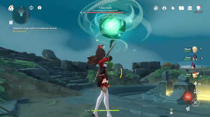 После применения анемо-способностей, внезапно на поле боя появится усиленный Глаз бури. Сейчас потребуется снять у мини-босса полоску здоровья до 0%, то есть одержать безоговорочную победу.