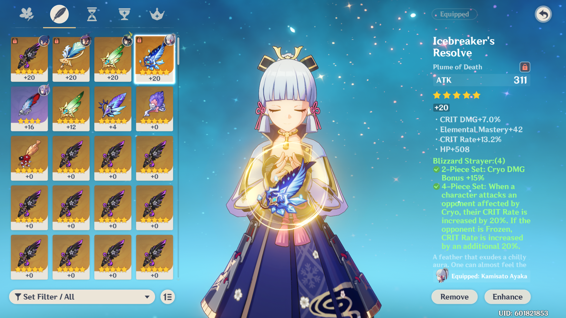 Артефакты больше похожи на снаряжение, которое может носить персонаж. Каждый персонаж может экипировать 5 артефактов, и есть 5 уникальных слотов для артефактов: цветок, перо (или перо), песок, кубок и диадема.