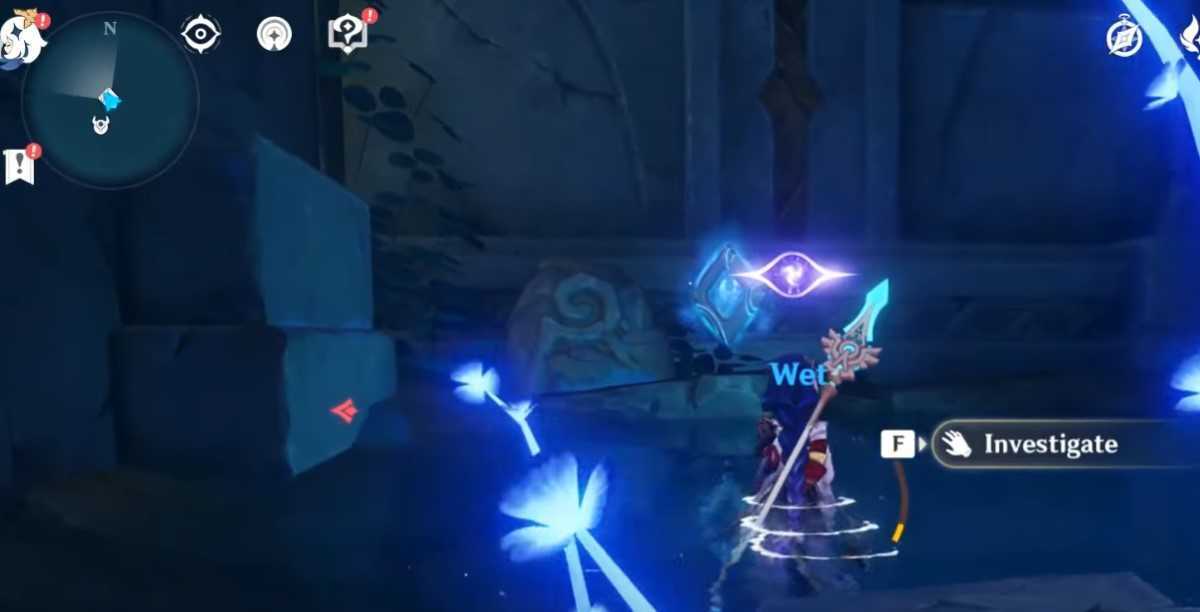 Его можно собрать в рамках прохождения задания мира «Подземные испытания драконов и змея», когда вам дадут задачу продолжить исследовать местность по указаниям Эндзе. Вам нужно будет добраться до водяного кольца, чтобы перебраться на островок с окулусом (его расположение показано на скриншотах).