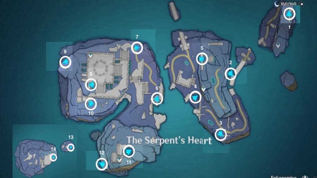 Всего есть 14 ключевых символов которое можно найти в Сердце Змеи. Ключевые местоположения Сигила следующие: