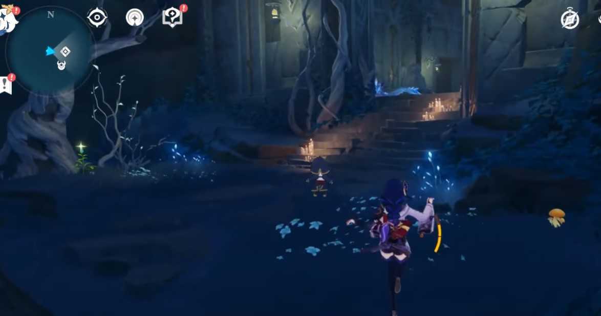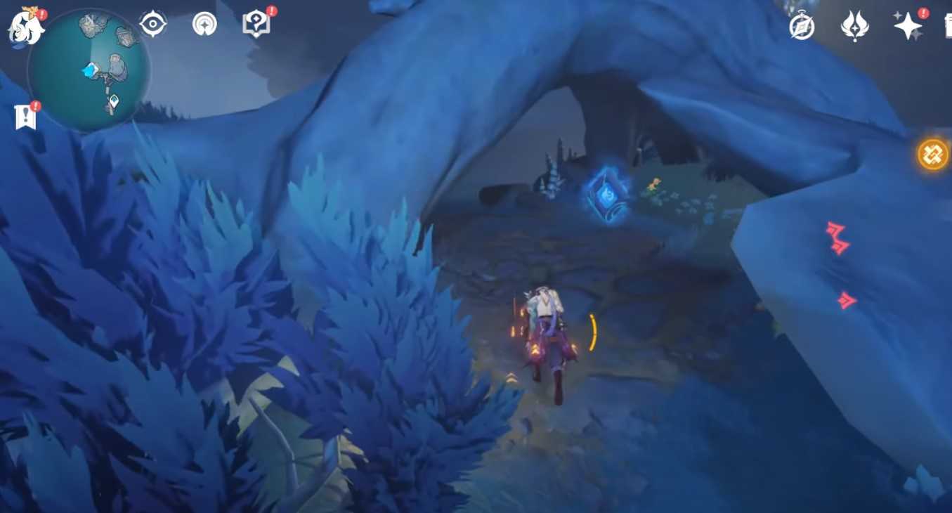 Некоторые ценные предметы Энканомии в Genshin Impact скрыты за солнечными фантазмами, которые выглядят как светящееся искажение пространства. Решаем проблему прежним способом — для обнаружения спрятанного за фантазмом предмет изменяем время суток.