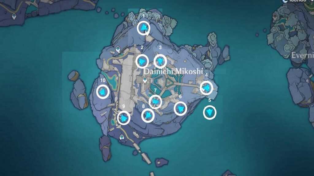 - Пять: На небольшом острове к юго-востоку от Дайничи Микоши.