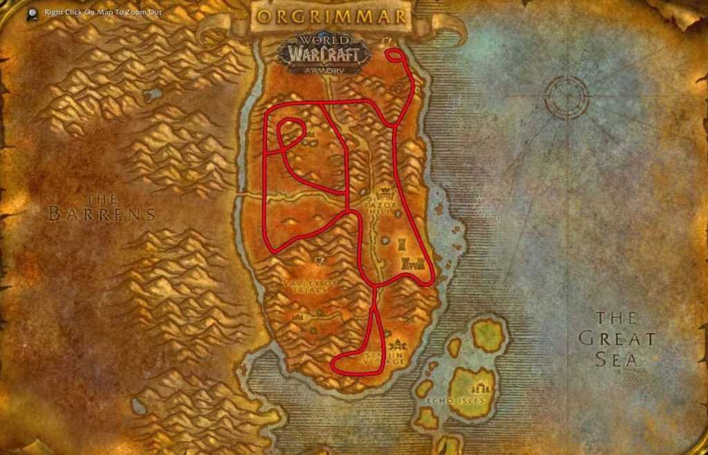 Орда: Тирисфальские леса, Дуротар, Мулгор, Леса Вечной песни