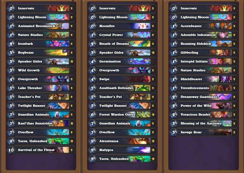 Как видите, в Hearthstone колода «Друид» имеет множество различных вариаций даже в своей базовой комплектации в отличие от некоторых других классов, в которых многие карты не используются вовсе.