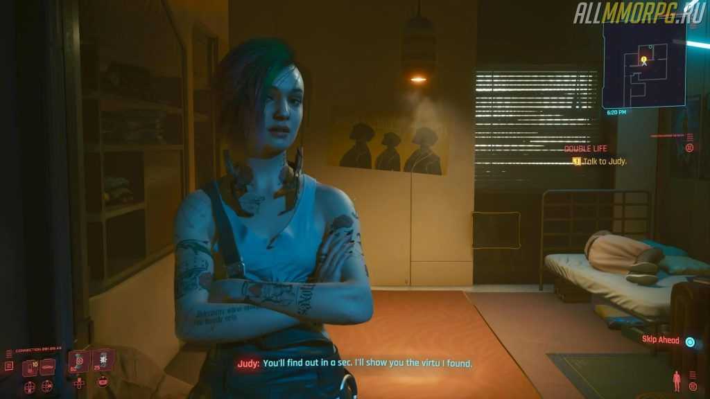 Перед тем, как завести с Джуди любовные отношения в Cyberpunk 2077, главный герой должен выполнить серию заданий, которые выдает эта милая девушка. Доступ к второстепенным миссиям у Альварес откроется спустя некоторое время после знакомства с ней.