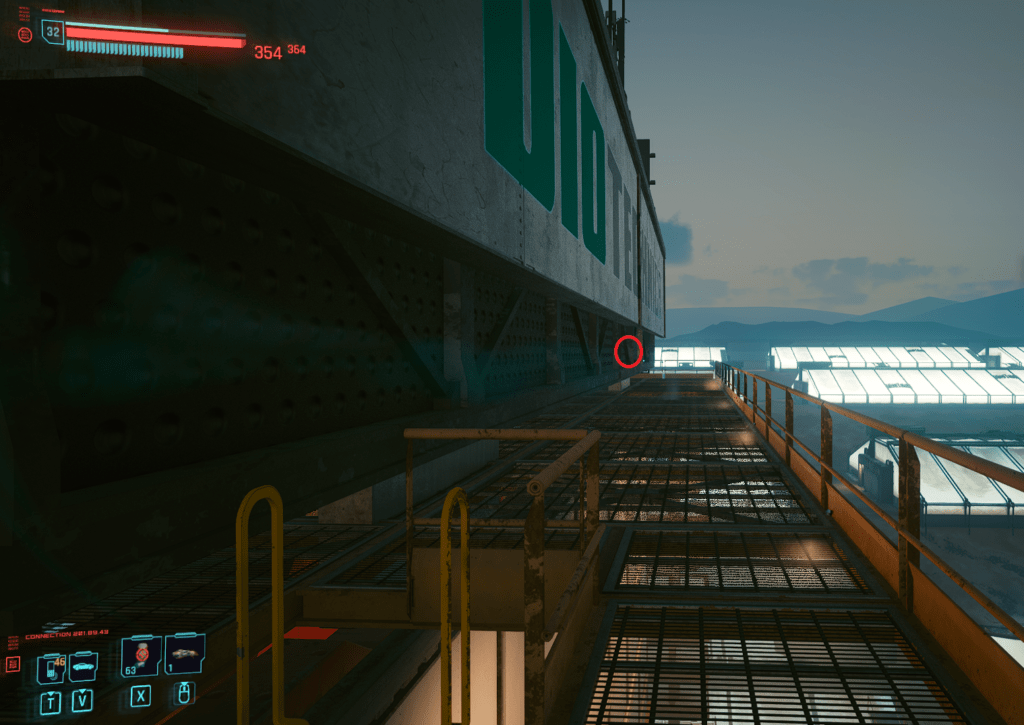 На следующей точке придётся сначала устранить бандитов, хотя не обязательно. Роутер находится на крыше вагончика, куда можно запрыгнуть с помощью имплантов ног или подогнав машину.
