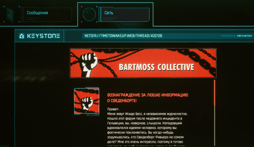 Квест «Красный пророк» начинается довольно незаметно, придёт несколько сообщений от общества Б и ссылка на сайт. Зайти туда можно с компьютера в квартире Ви.