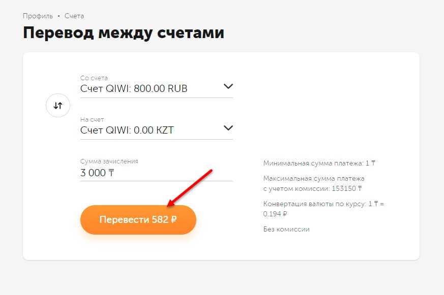 Пополняем аккаунт киви на необходимую сумму + 16% к сумме пополнения — примерно такой процент теряется во время всех транзакций. Далее переводим рубли в тенге.