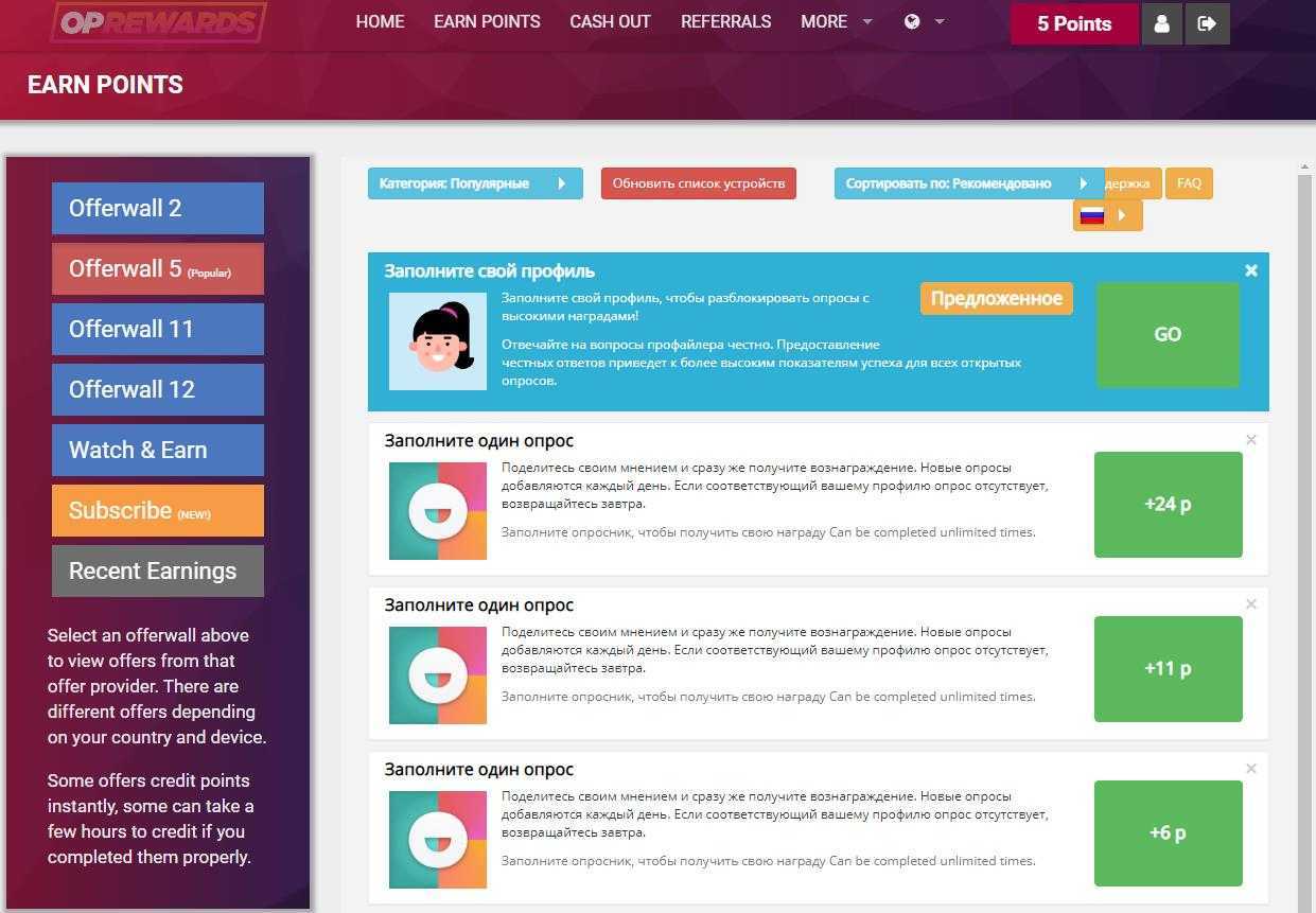 Ещё один зарубежный сервис без русского языка, где за регистрацию предусмотрен бонус. На сайте есть своя валюта – points, она эквивалентна робуксам. Зарабатывать её можно также через задания (offers) или с мобильного приложения. По сути ничем не отличается от предыдущего проекта, только заказов тут всегда больше: