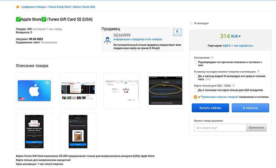 На проверенных продавцов и ссылки на них вы найдете ниже. Также вы сможете найти сами подходящего для вас продавца и товар. Для этого в поиске сайта вводим iTunes и находим товары «Карты iTunes USA», как это сделать подробнее на видео выше.
