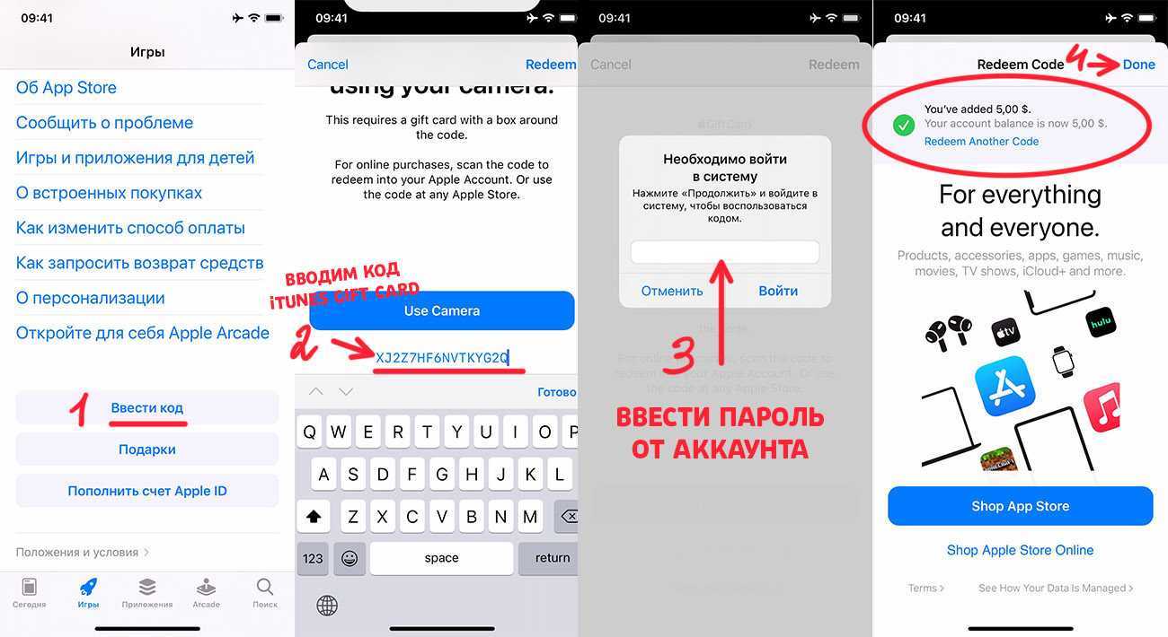 Как только у вам стал доступен код подарочной карты, рекомендую сразу его активировать. Так как мы с Вами покупали карту для США, то и активировать ее нужно на Apple ID в регионе США, о чем мы писали выше.