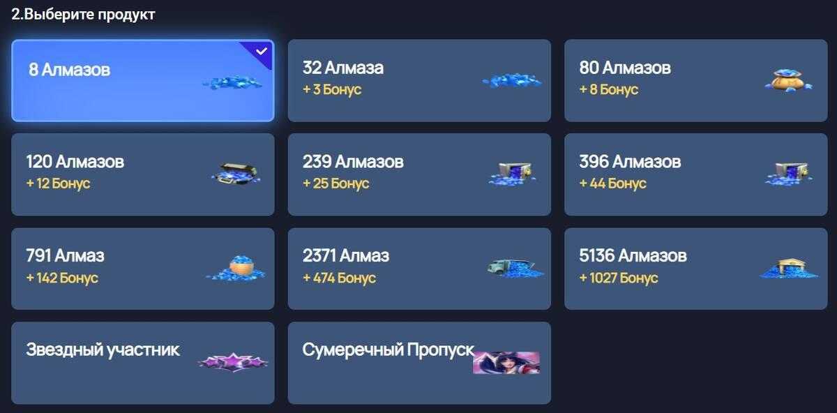 4. Выберите из представленного списка нужное вам количество алмазов (оформлять подписку нельзя).