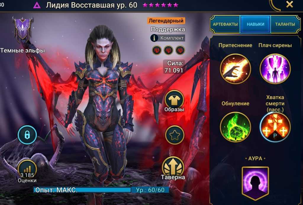 Иногда в атаке используется и аура на меткость. Ее ставят только против команд с высоким сопротивление и силой больше 400к. Есть 2 подходящих героя с такой аурой — Раманту и Митрала.