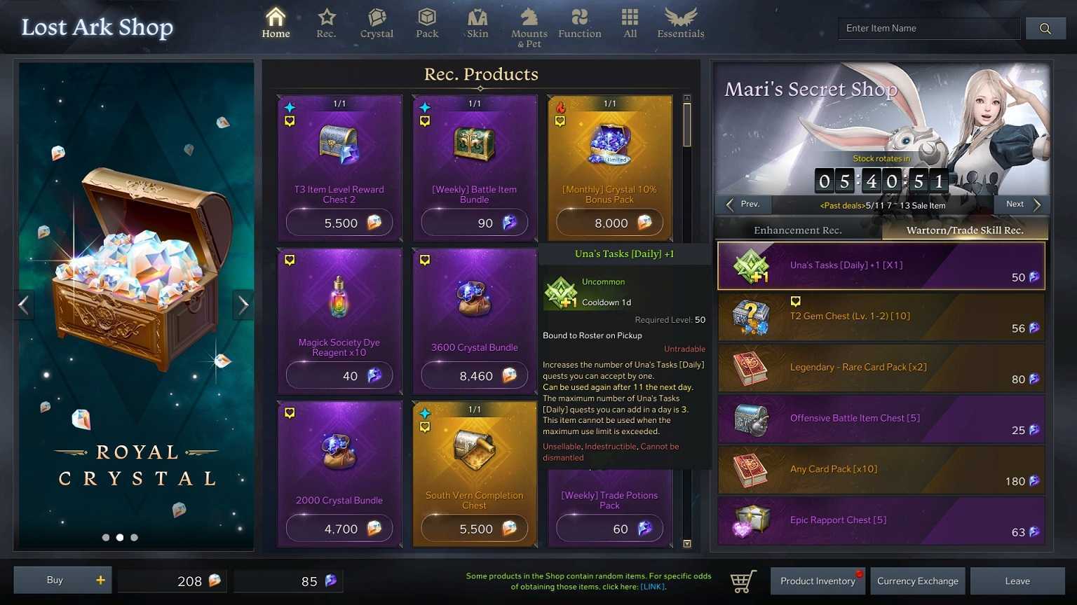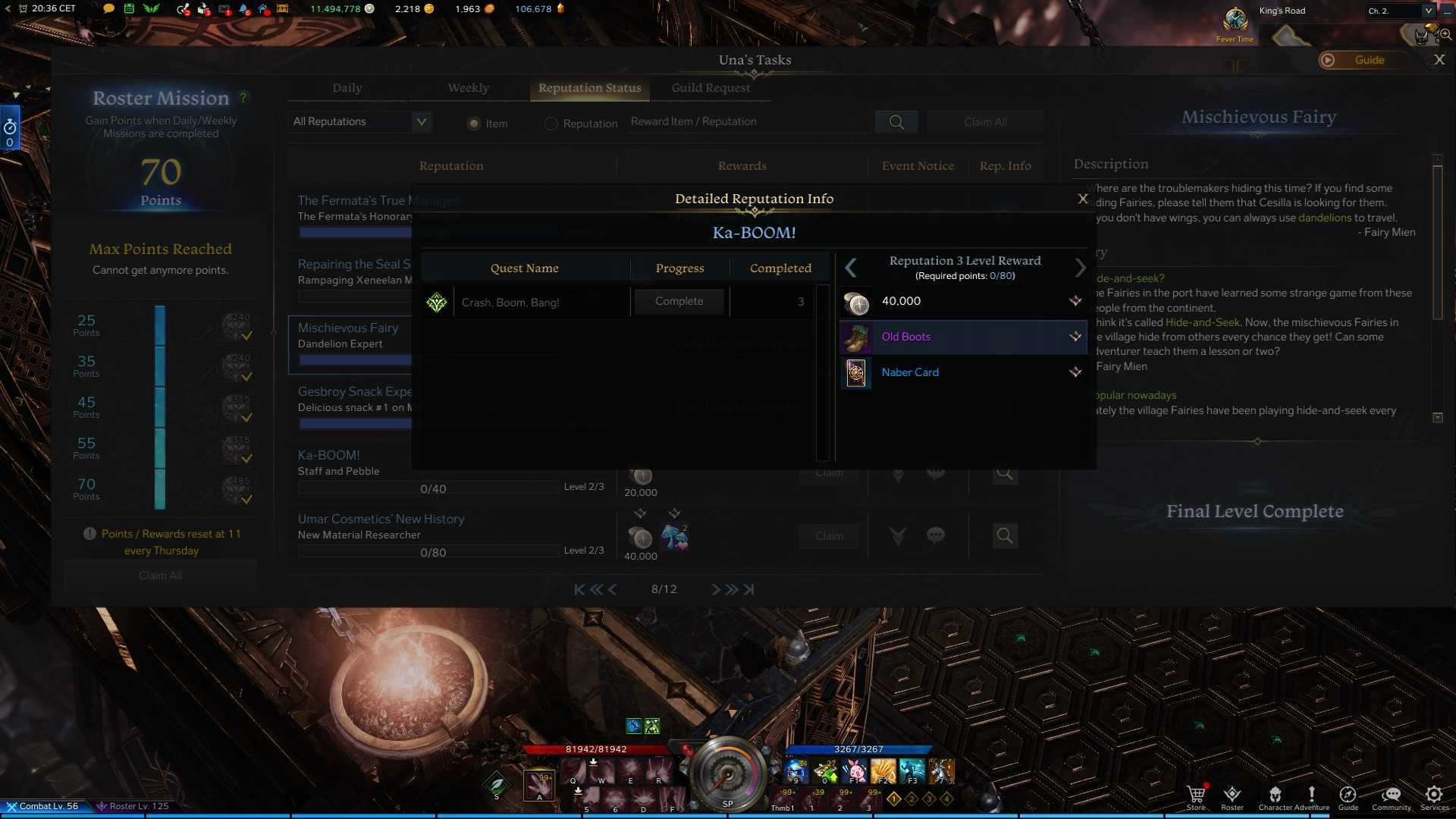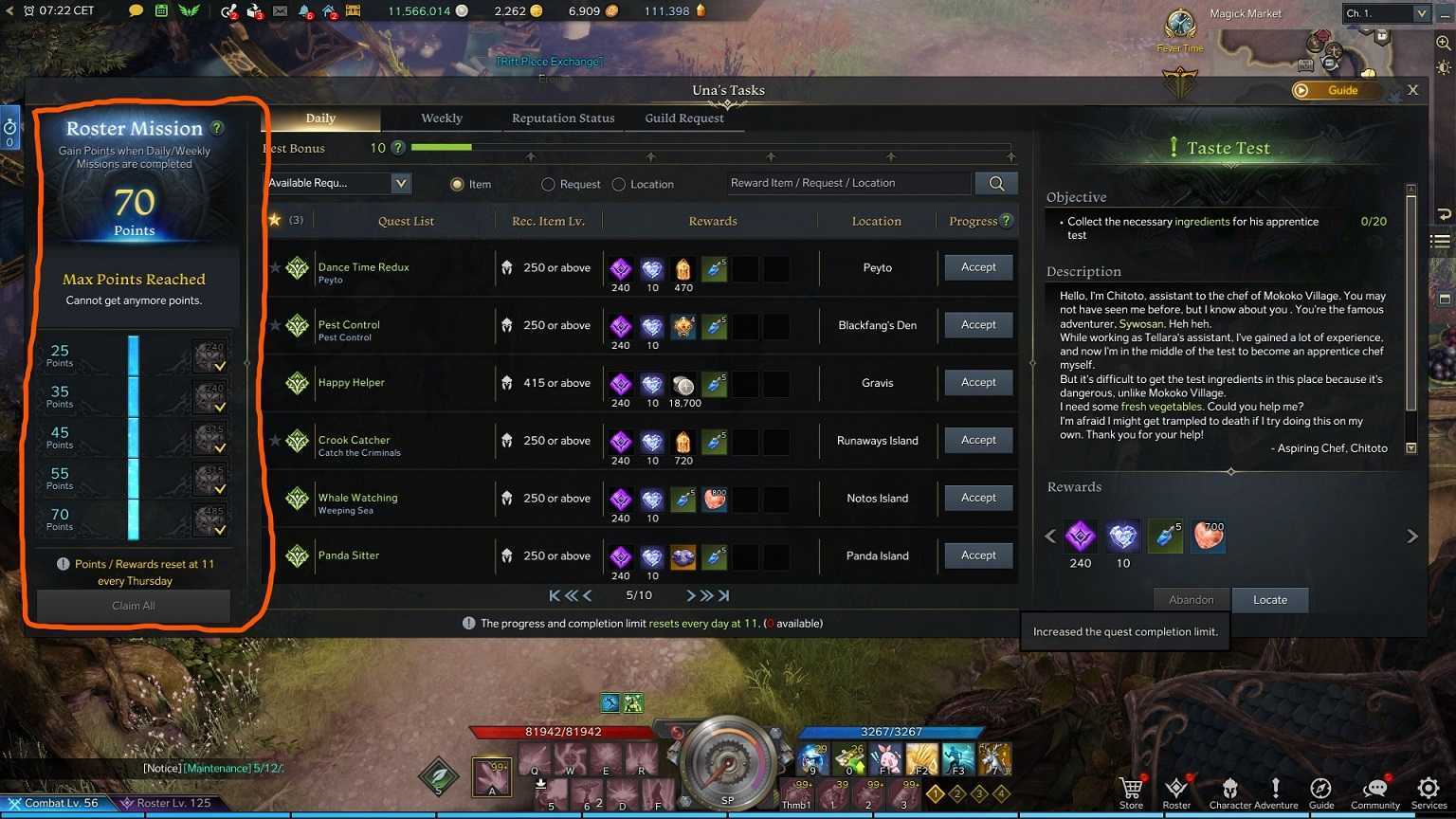 - Еженедельно: еженедельные задания Уны связаны с действиями в конце игры (подземелья хаоса, битва с боссами, развитие торговых навыков и т. д.). Они сбрасываются еженедельно.