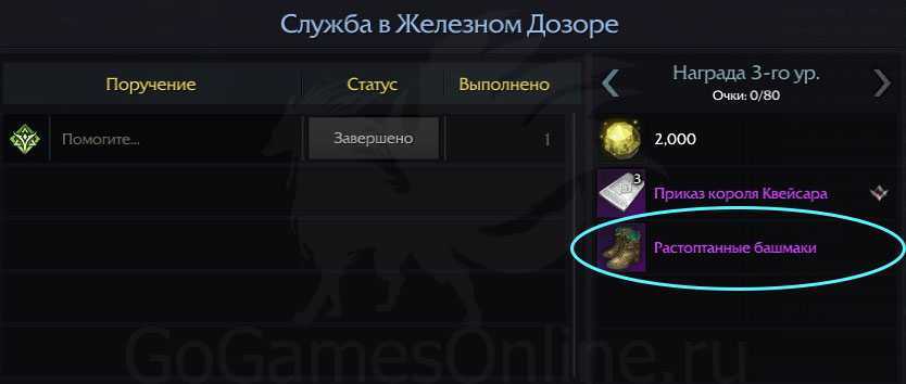 Растоптанные башмаки даются в награду за выполнение ежедневного задания «Помогите» в Эфонском союзе за 15 дней.