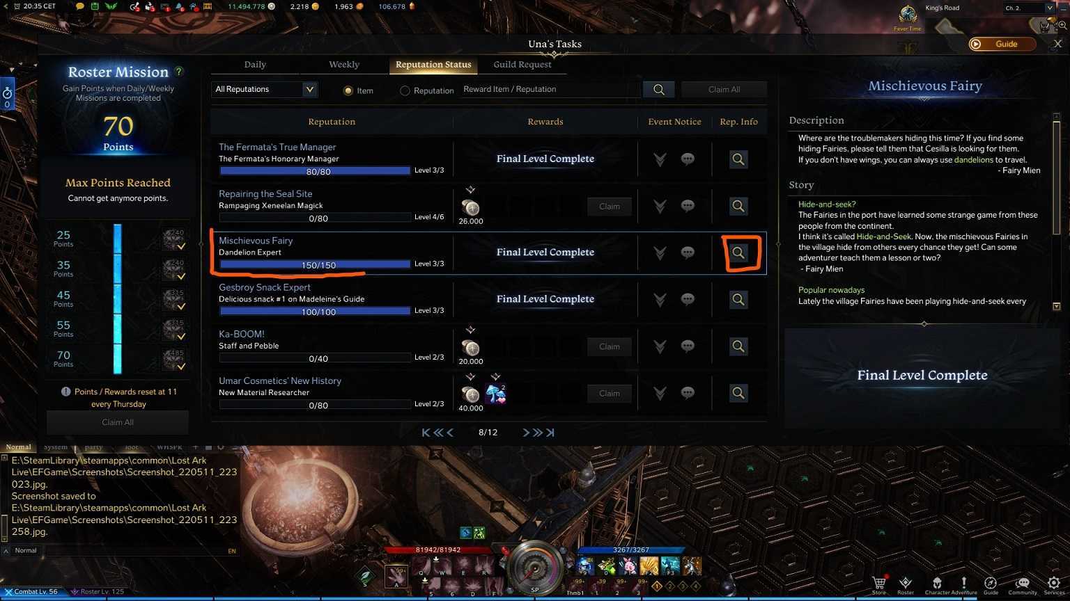 - Репутация: Ежедневные задания повышают вашу репутацию у определенных NPC. При достижении определенных пороговых значений вы можете получить дополнительные награды из этого меню.