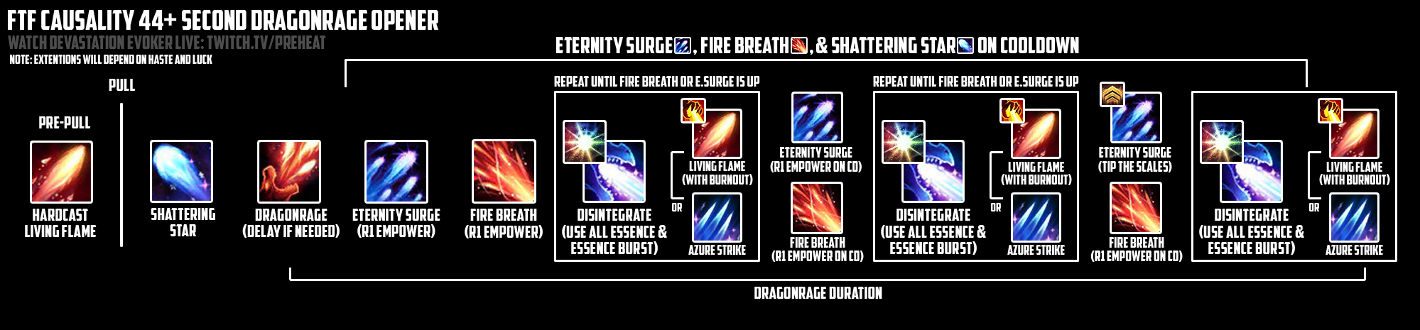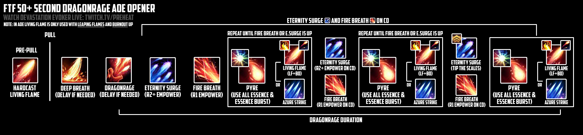 При взятии таланта Поддержание огня можно использовать альтернативный опенер. Всплеск вечности в таком случае используется в качестве первой заряжаемой способности, а Смещение равновесия придерживается под конец Ярости дракона для мгновенного применения второго Всплеска вечности, продлевающего Ярость дракона.