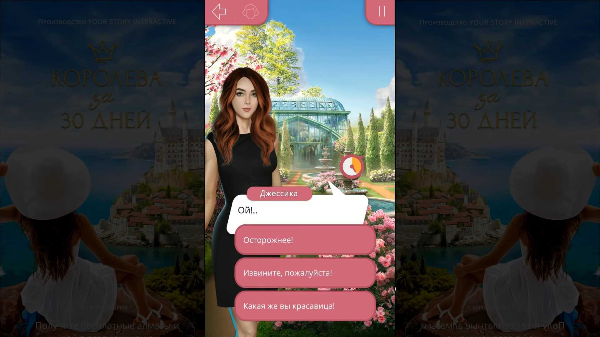 В истории «Королева за 30 дней» игры «Клуб Романтики» (Андроид, iOS) ваша героиня отправится в далёкую восточную страну, где ей предстоит стать частью высшего общества. Дворцовые интриги, общение с царственными особами, тюрьма и бегство – всё придётся пережить в этой головокружительной истории. Всё начинается хорошо, восточная экзотика блестит и манит, но после показа ювелирных изделий проблемы начинают сыпаться как из рога изобилия.