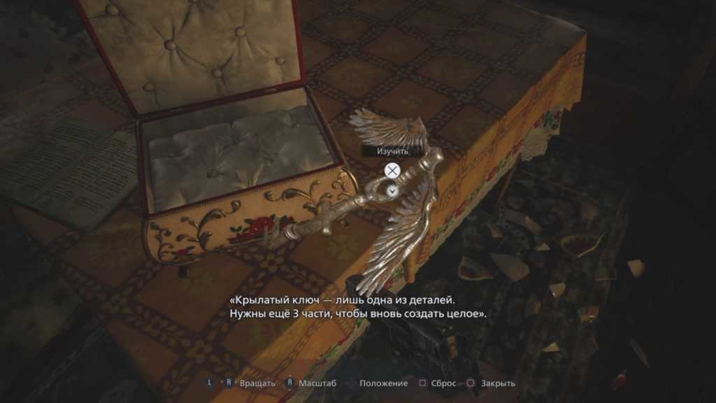 Заходим внутрь, вскрываем шкатулку и забираем ключ от внутреннего двора. Теперь нужно спуститься на первый этаж и бежать в сторону кухни, прямо у двери нас встретит ещё одна дочь Димитреску, — не обращаем на неё внимания и спокойно проходим во внутренний дворик замка.