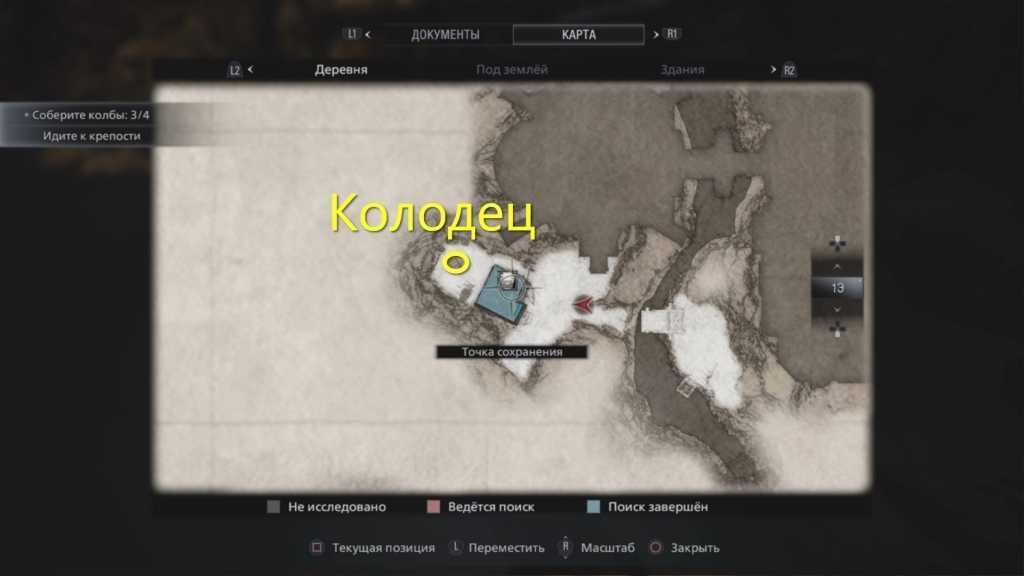 Идите за незнакомкой, которая только что вас спасла. В конце пути она вам расскажет про эту деревню. Осмотрите локацию. На кладбище вы найдете алтарь с деревянным козлом. В церкви будет второй алтарь с девой. Тут же на скамье можно найти карту посёлка. Ваша цель – дом Луизы. Идите к нему через задние ворота храма.
