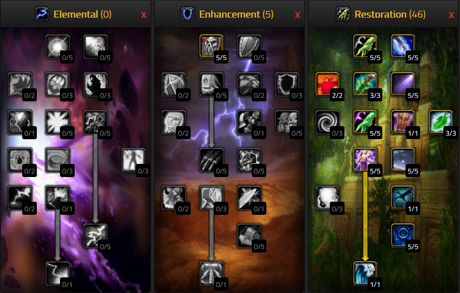 When it comes to picking talents, restoration shamans have less options than it may seem. Outside of Ancestral Knowledge, both the elemental and enhancement trees don’t offer anything of much use to a healing shaman. This makes the use of a “deep” restoration talent tree build much more effective, allowing you to pick up nearly all of the talents that will strengthen a restoration shaman.