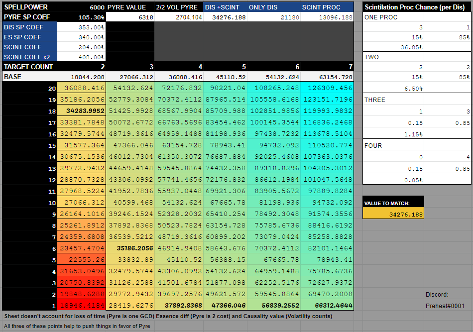 Можно рассчитать эффективность каждого заклинания (перемножив силу заклинаний с модификатором умения) с учетом проков Мерцания от Дезинтеграции.