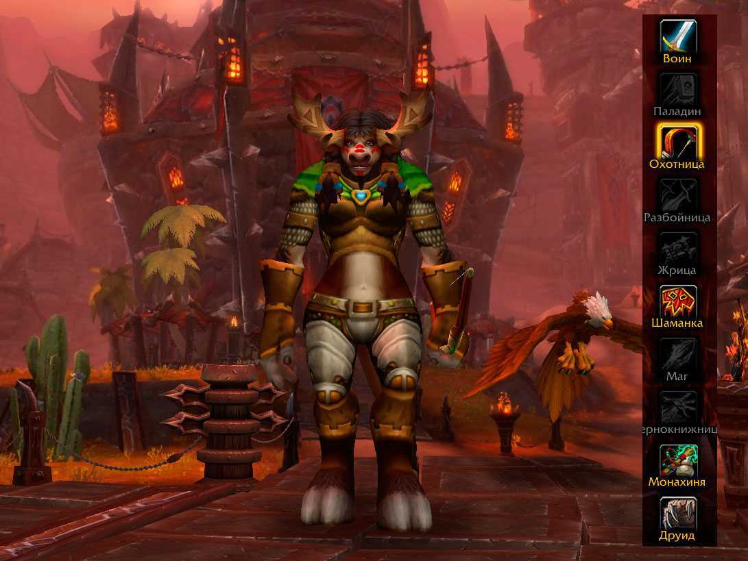 При создании персонажа-таурена Крутогорья можно выбрать один из следующих классов: