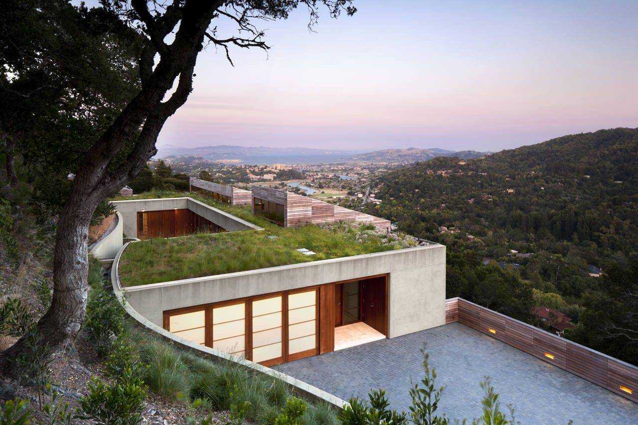 Одна из главных целей при проектировании резиденции Кентфилд Хиллсайд состояла в том, чтобы позволить ей взаимодействовать с волнистым склоном холма и захватить вид на близлежащие горы и залив Сан-Франциско. Резиденция расположена в графстве Кентфилд, штат Калифорния, и была спроектирована архитектором Тернбулл Гриффин Хелслуп.