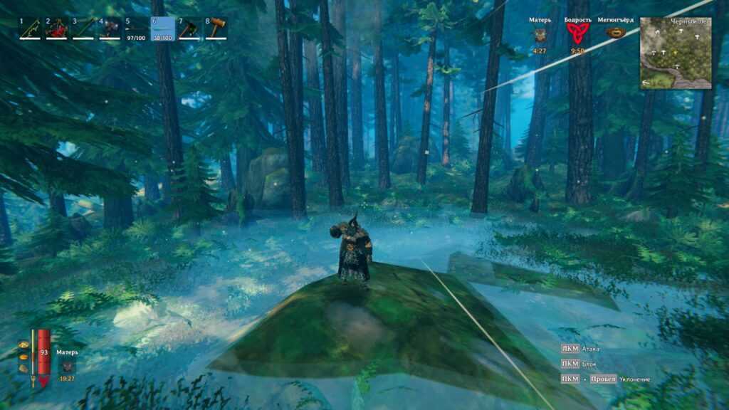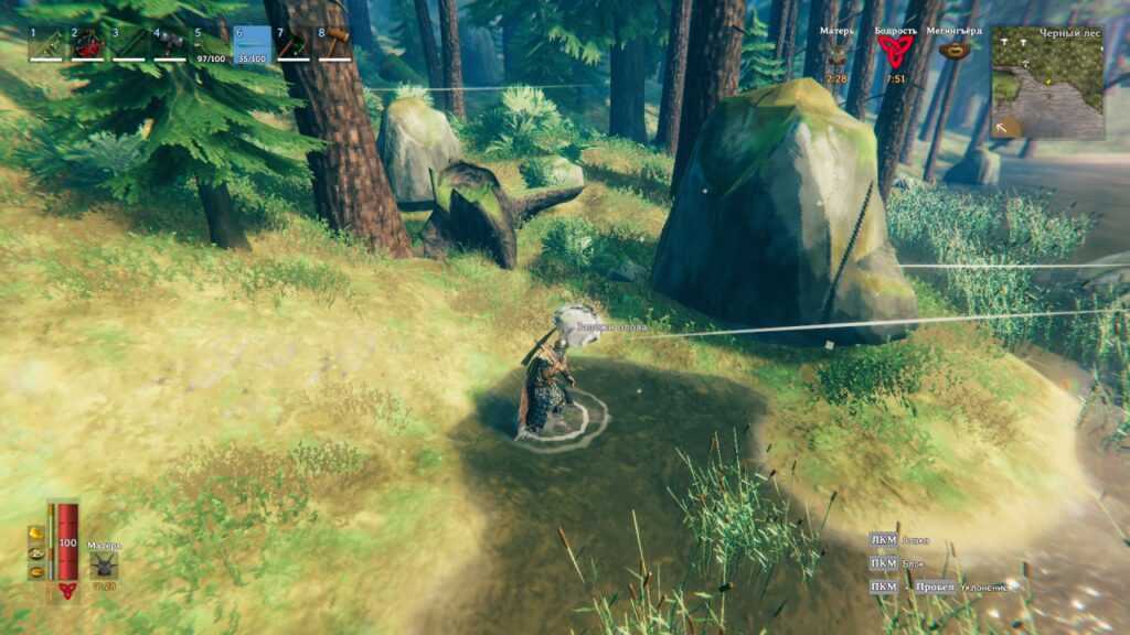 Советую делать базу поближе к Черному лесу, чтобы поменьше бегать за рудой. На мой взгляд, без крафта бронзовой брони можно обойтись. Для фарма Черного Леса и Болота с лихвой хватает подвергнутой апгрейду брони из кожи тролля, да и выглядит она более стильно и молодежно. А вот инструменты и оружие, которые вы сделаете из бронзы — шикарная замена примитивному снаряжению, используемому в самом начале прохождения Valheim.