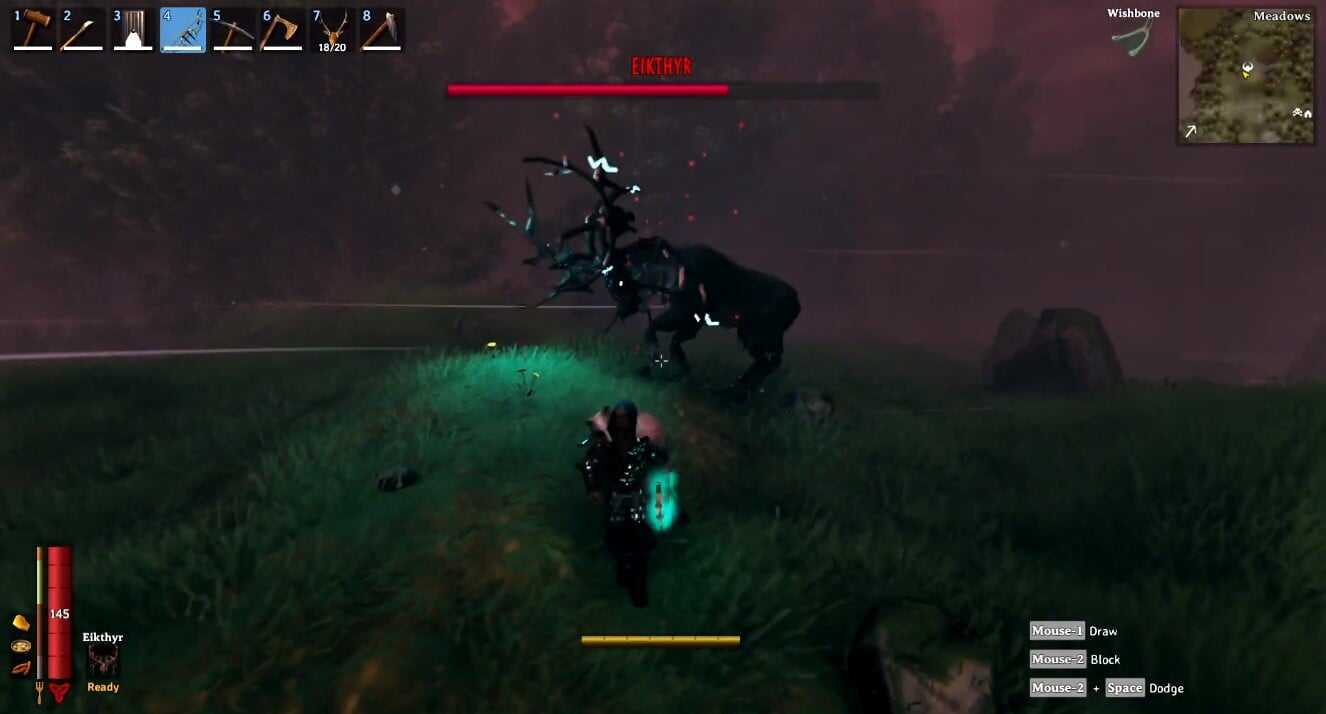 Легкий босс из начала игры. Олень умеет атаковать молнией и слаб перед дальними атаками из лука. Для призыва нужно две оленьи головы. Смерть Эйктюра открывает рецепт кирки