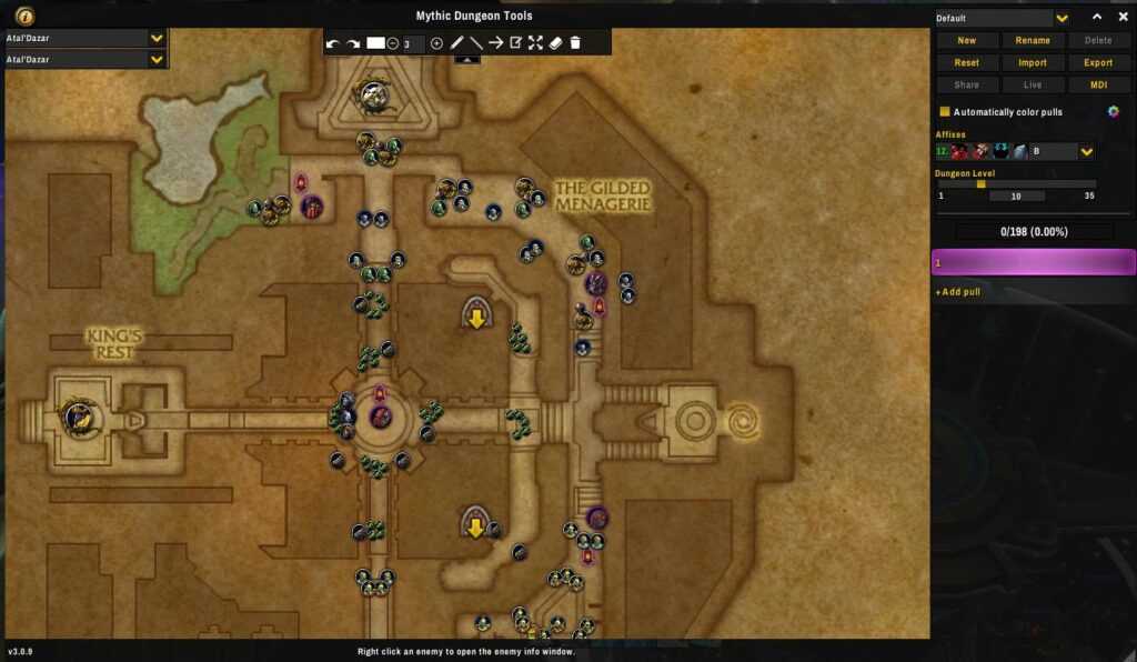 MDT — аддон для карты мифик+ подземелий, добавляет новые данные, позволяя вам максимально эффективно спланировать прохождения эпохального подземелья. Выделяет каждого NPC в инстансе, которых вы можете разделить на группы и установить приоритеты очередности уничтожения. При убийстве аддов, шкала прогресса аддона будет заполняться, и вы будете знать, каких аддов нужно убить, чтобы полностью ее заполнить. Вы можете отправить настройки аддона другим членам группы, тогда они тоже будут видеть ваши планы подземелья.