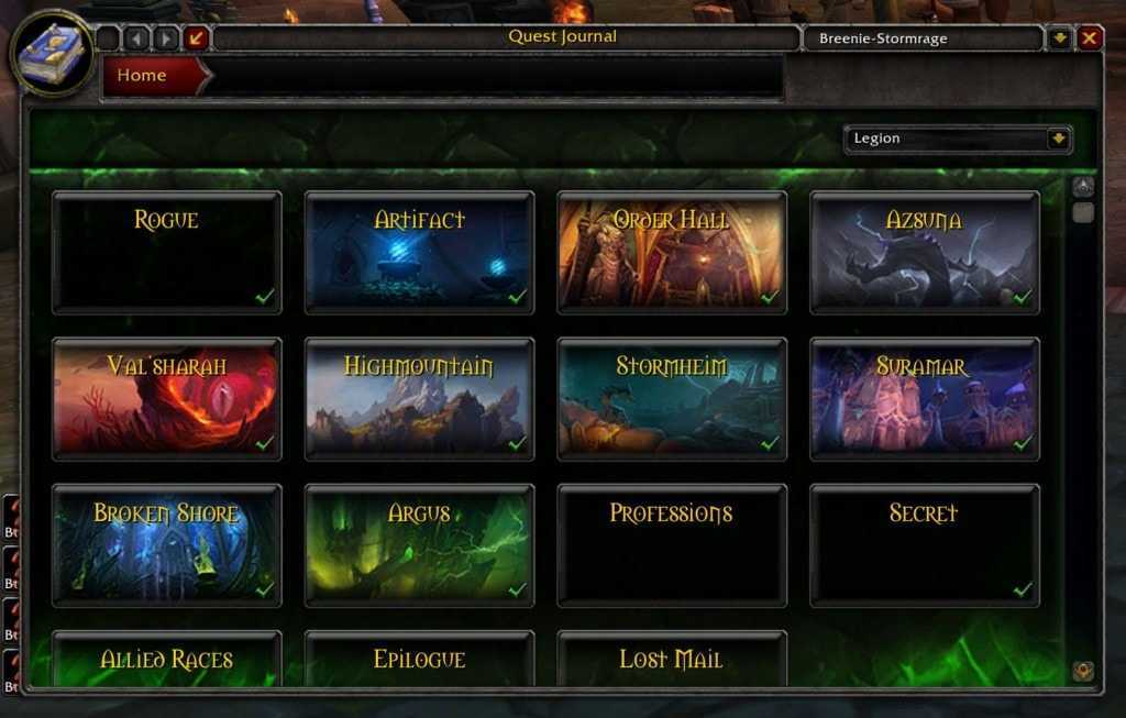 Позволяет отслеживать цепочки квестов — уже выполненных и еще не завершенных. Легко следить за прогрессом и этапностью прохождения квестовых цепочек.